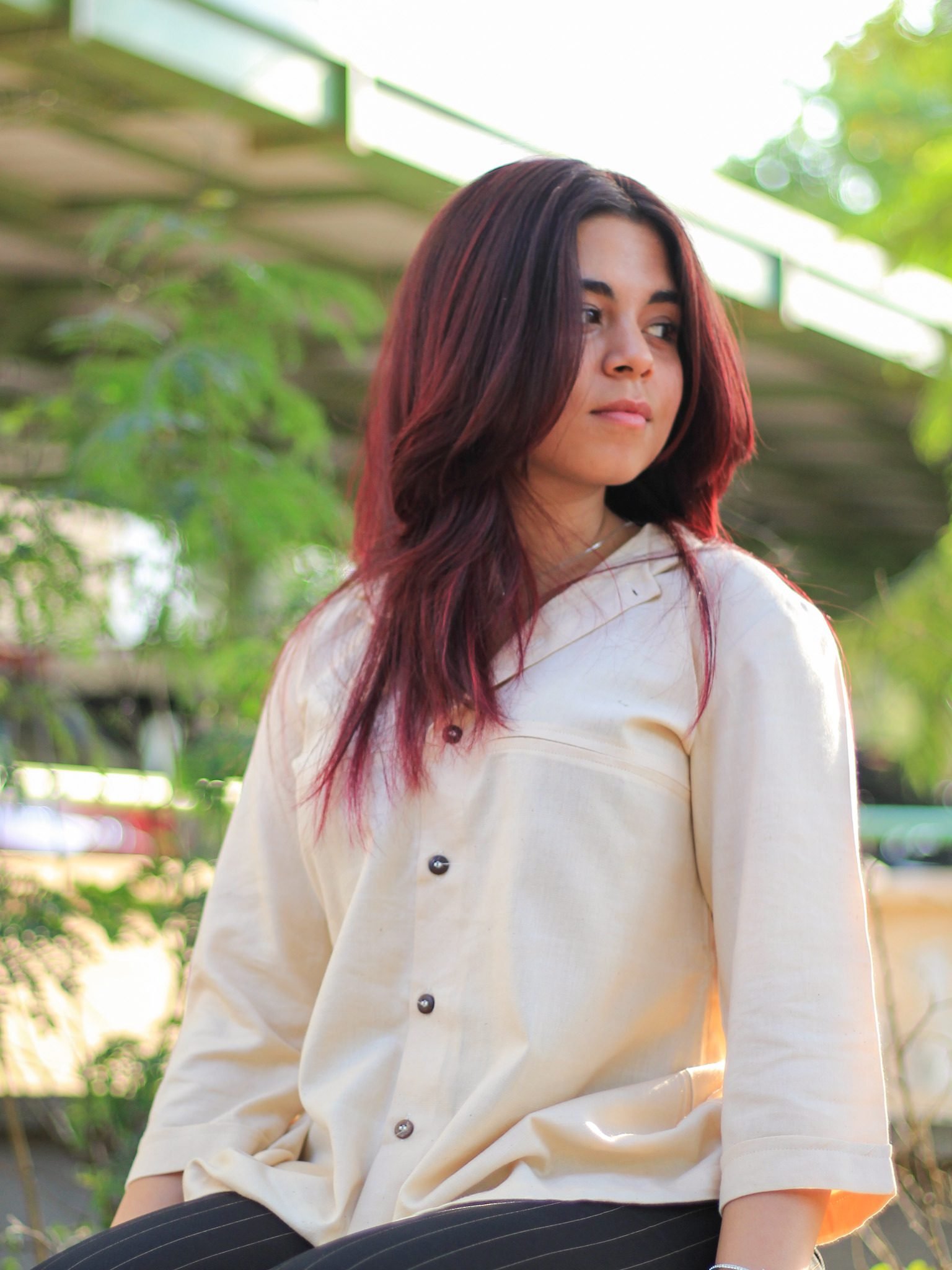 Each Evara piece is crafted in India using plant-based materials and natural design elements like coconut shell buttons—bringing thoughtful details to timeless silhouettes.
